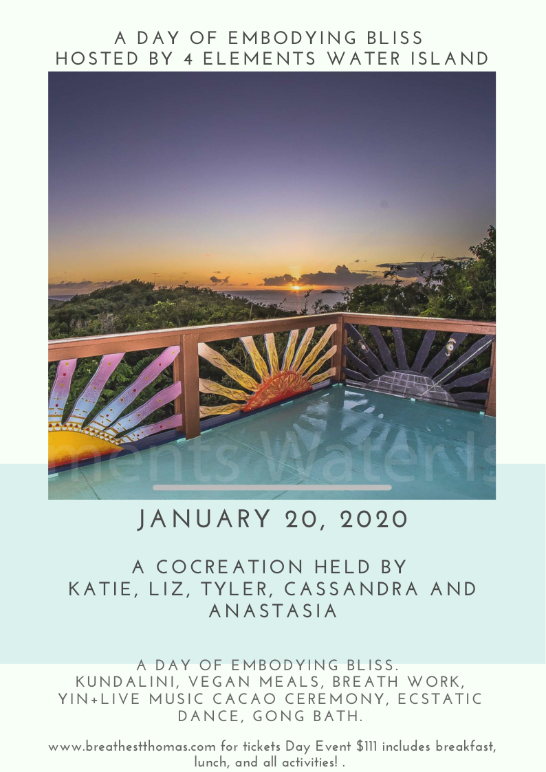 A day of coming fully into the body and breath. An opportunity to soften, connect, and flow into the natural state of our being, one of bliss. We have designed this day to strip away the buzz of the mind leaving you fully centered in your heart.